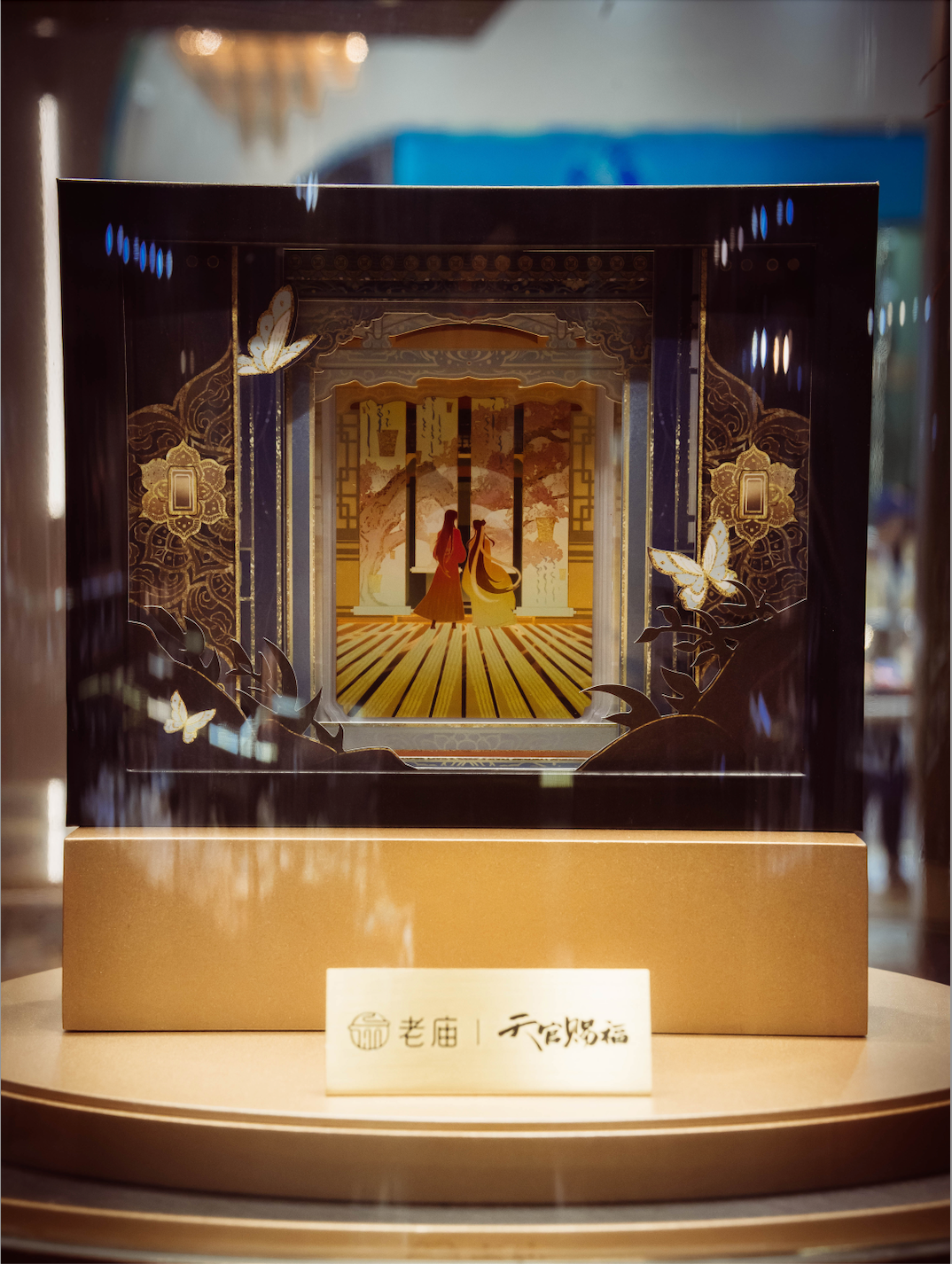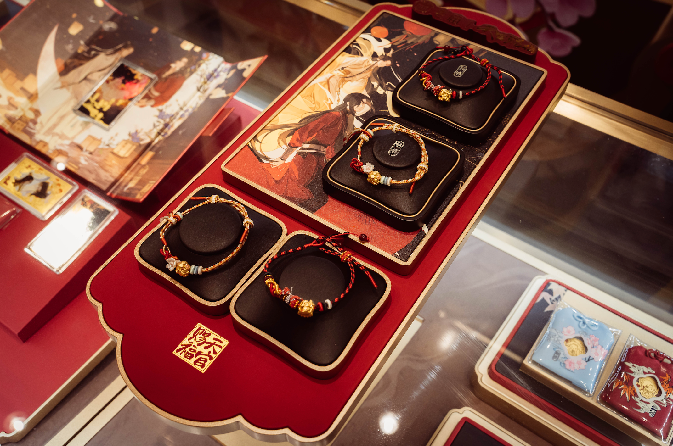 在老庙x《天官赐福》动画联名系列展示区域,全新推出的限量版“兰夜题书”相框黄金画首次面向大众展出。新品以匠心金艺再现动画神韵,立体纸雕造景精致细腻,呈现富有故事性的视觉层次,将动画中的经典画面化为可触可感的黄金产品,经过贴近年轻粉丝群体偏好的产品打造,达成情感共鸣。而在此前推出的黄金手绳、转运珠、御守、金钞等一系列联名产品,亦是经过紧密贴合IP细节的灵感构思,另有尽显东方美学的产品策划,深受喜欢古风的泛二次元年轻人群欢迎,吻合他们对IP周边的收藏需求,进一步加深了老庙与Z世代人群的情感链接。